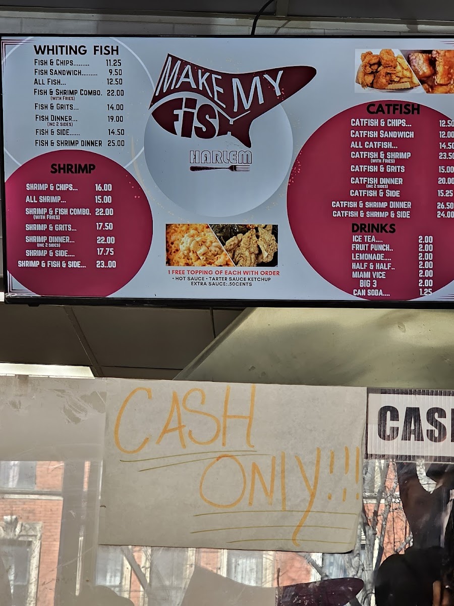 Welcome to Make My Fish, a seafood haven located at 120 W 116th St, New York, NY. This culinary gem specializes in fried fish and savory shrimp dishes, drawing in seafood lovers from near and far. The menu showcases a variety of options, including the enticing Shrimp and Fish Combo and the popular All Shrimp Bundle, both bursting with flavor and served alongside your favorite Coca-Cola beverage.